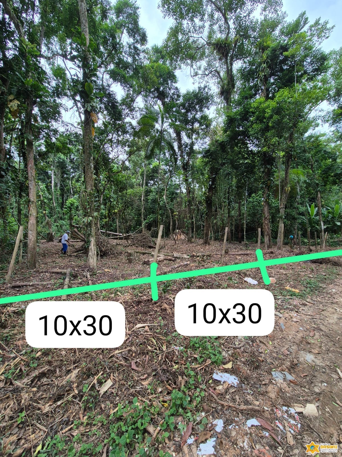 ??O lote tem 10x30 m² já com água e luz para instalação.